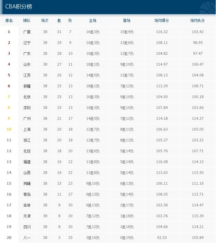 2.季后赛:常规赛的前十名进入季后赛。