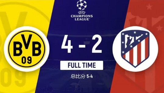 北京时间4月17日凌晨3时整,2023-24赛季欧冠1/4决赛次回合在伊杜纳信号公园球场展开角逐,多特蒙德坐镇主场迎战马德里竞技,首回合马竞2-1领先多特。上半场莫拉塔失单刀,布兰特和马特森5分钟进2球,下半场胡梅尔斯乌龙,科雷亚替补建功,菲尔克鲁格和萨比策连入2球反超。最终多特主场4-2战胜马竞,总比分多特5-4逆转马竞,时隔11年重回欧冠4强。