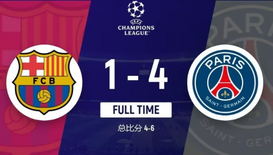 欧冠1/4决赛次回合,巴萨主场对阵巴黎,双方首回合比分为巴萨3-2领先。上半场,亚马尔助攻拉菲尼亚破门,阿劳霍拉倒单刀的巴尔科拉直红被罚下,登贝莱扳平。易边再战,维蒂尼亚贴地箭建功、姆巴佩双响,哈维和巴萨助教均抱怨染红,最终十人巴萨1-4,总比分4-6巴黎止步欧冠8强。